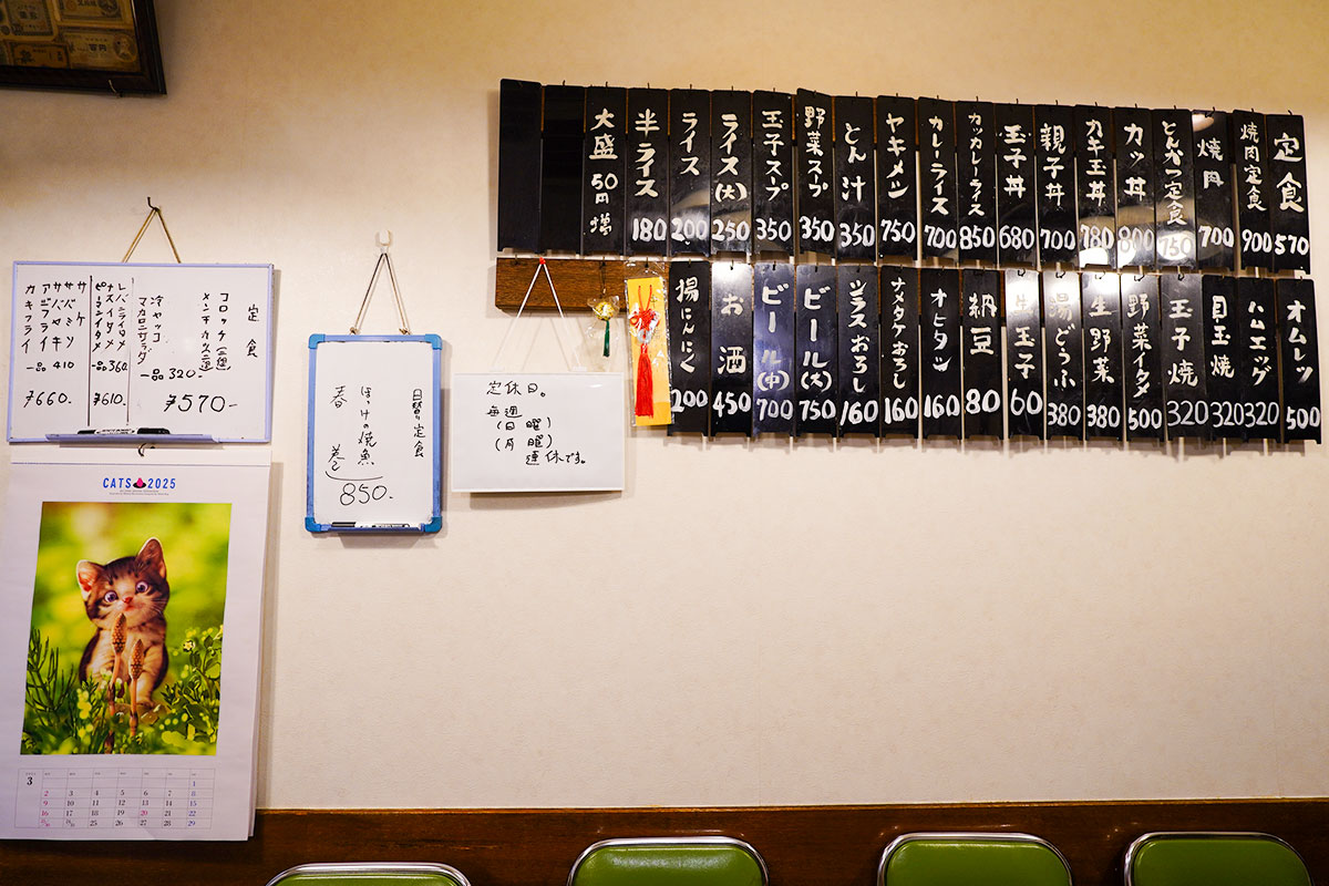 1960年の創業以来、親子二代にわたってこの場所で「美味しくて、安い」料理を提供し続けています。混雑時は自然に相席になりますが、ご主人の穏やかな人柄もあってか、店内はいつも和やかな空気に包まれています。