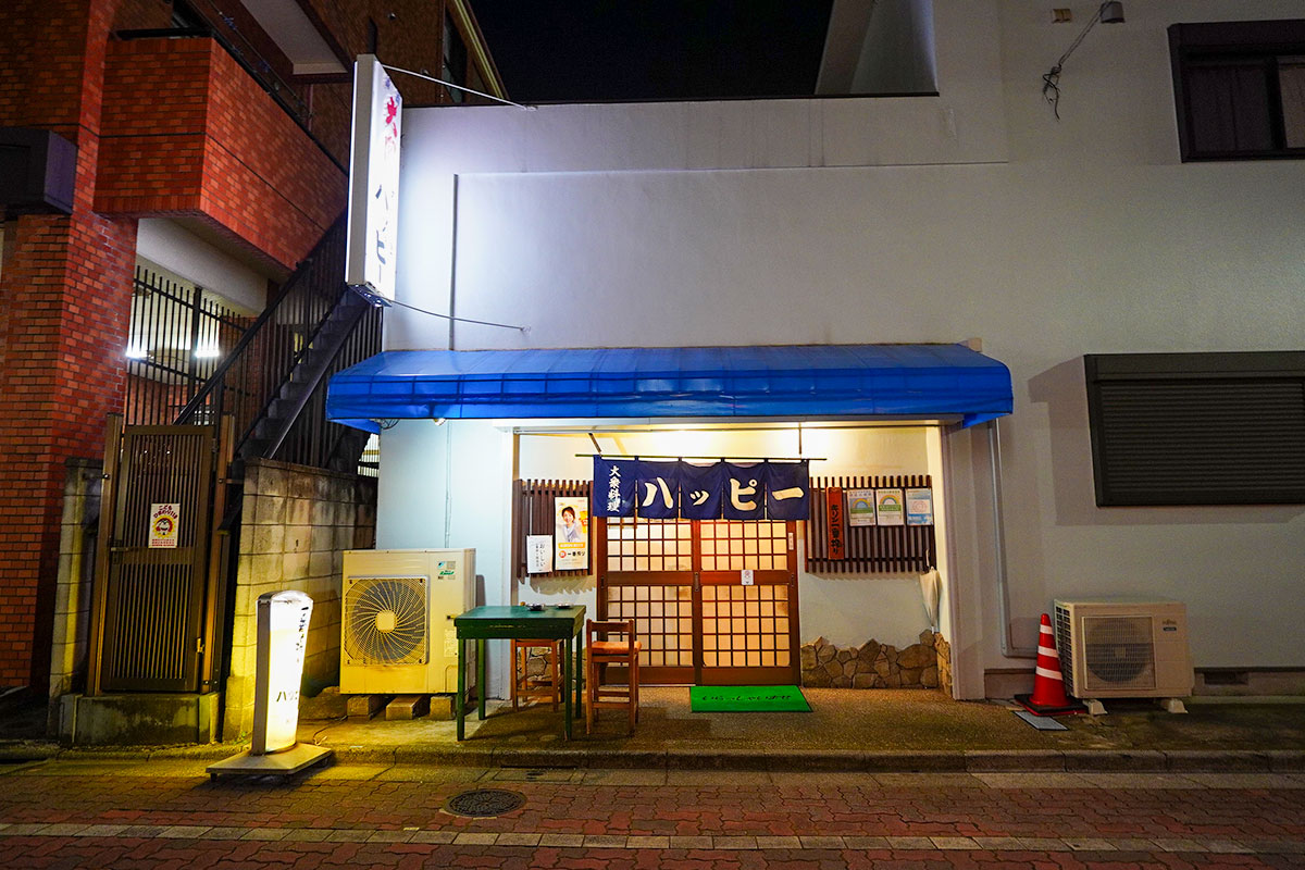 JR常磐線の亀有駅北口。賑やかな商店街を少し進んだ先に、長年地元で愛されてきた『ハッピー』はあります。昭和の時代から続くような、どこか懐かしい佇まい。初めてだと少しだけ扉を開けるのに勇気がいるかもしれませんが、一歩足を踏み入れれば、そこは常連さんたちの笑顔と活気に満ちた温かい空間が広がっています。
