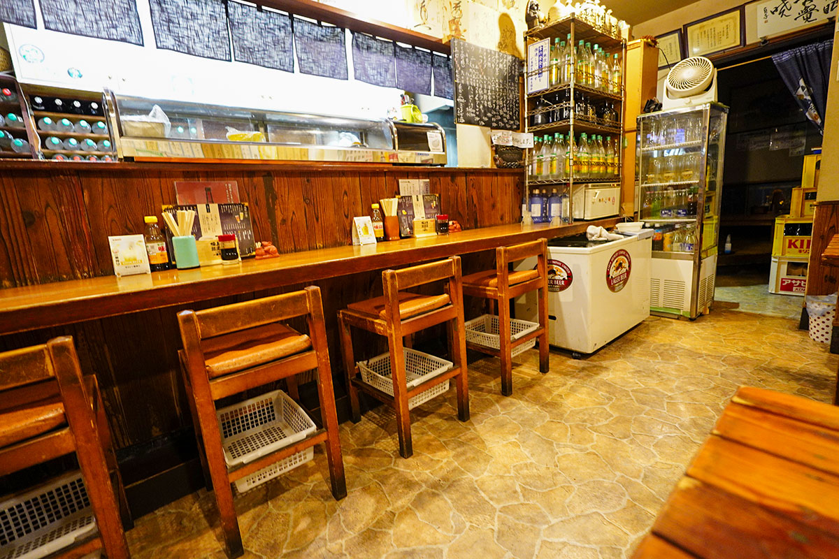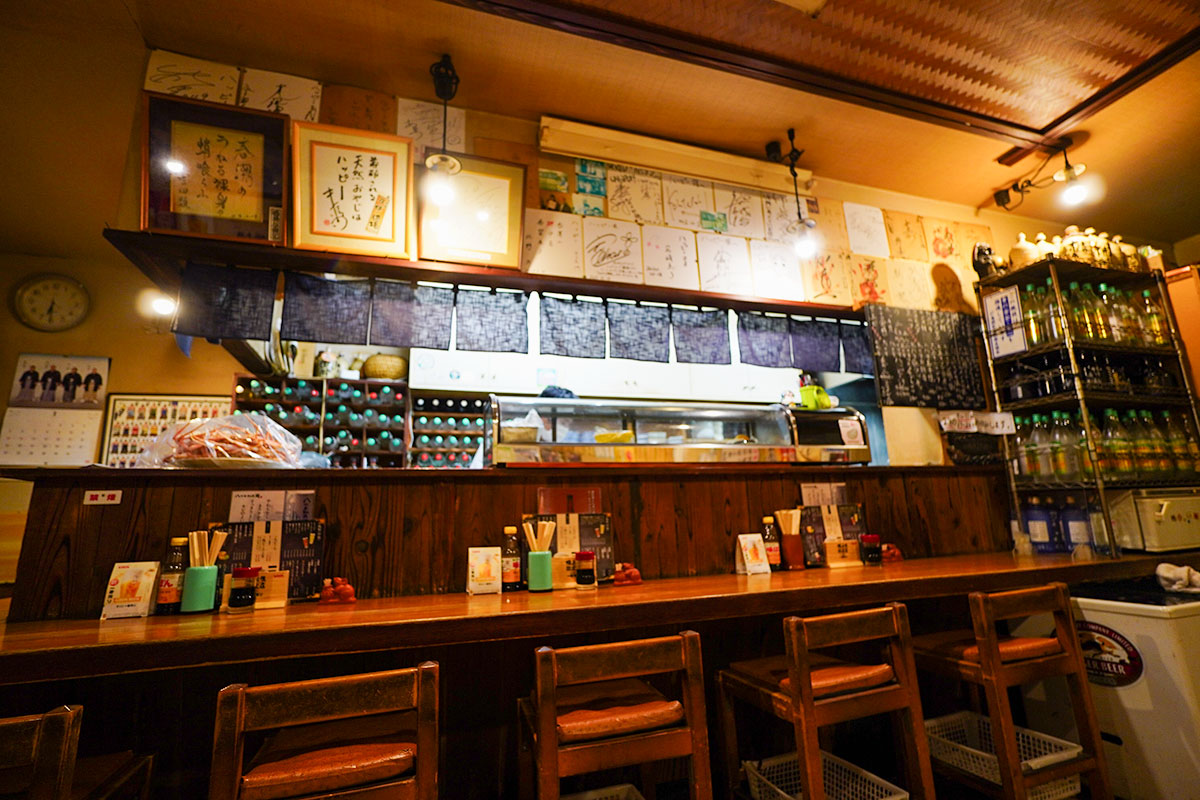 店内はL字のカウンターとテーブル席、奥には小上がりも。初代は青森から上京し、この地で店を構えたそうです。現在は二代目が中心となって先代の味を守っています。この家族経営ならではの空気が、なんとも心地よい!