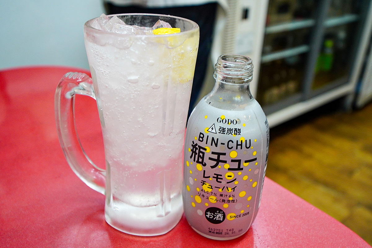 ビール瓶が空になったところで、次のお酒をお願いしました。レモンハイ(瓶)(490円)です。