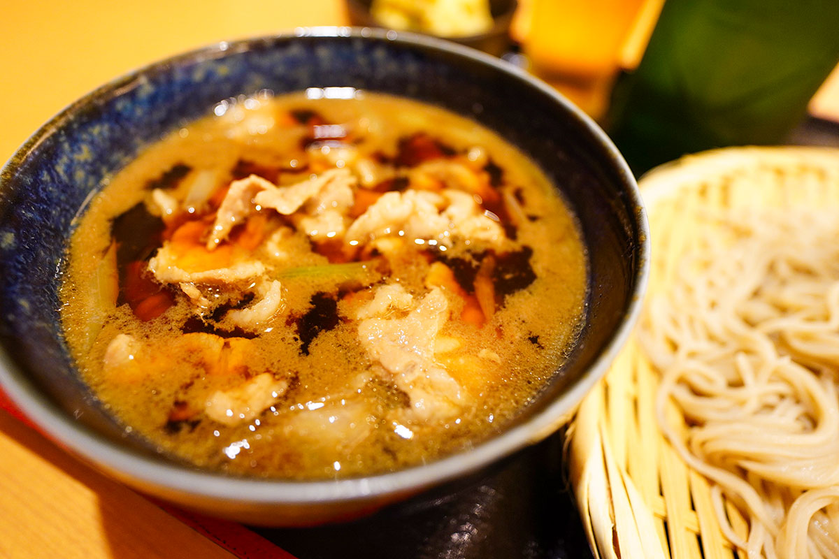 つるりとした喉ごしの蕎麦を、豚肉の旨味が溶け出した熱々の汁にくぐらせて手繰る。最高の締めくくりです。
