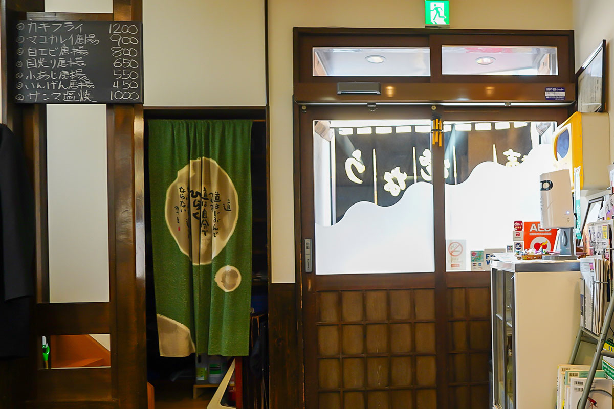 私が訪れた13時過ぎでも、店内は満席に近い賑わい。もちろん皆さんの手元には麒麟の瓶やお銚子が並んでいます。