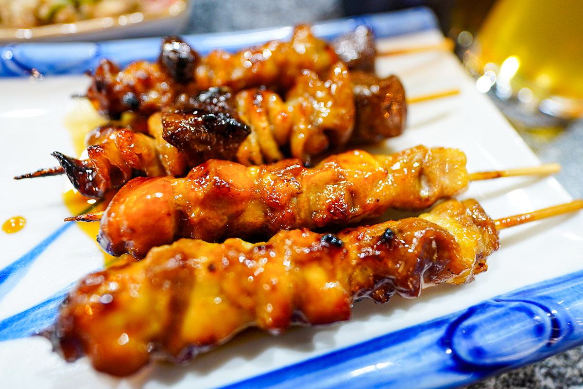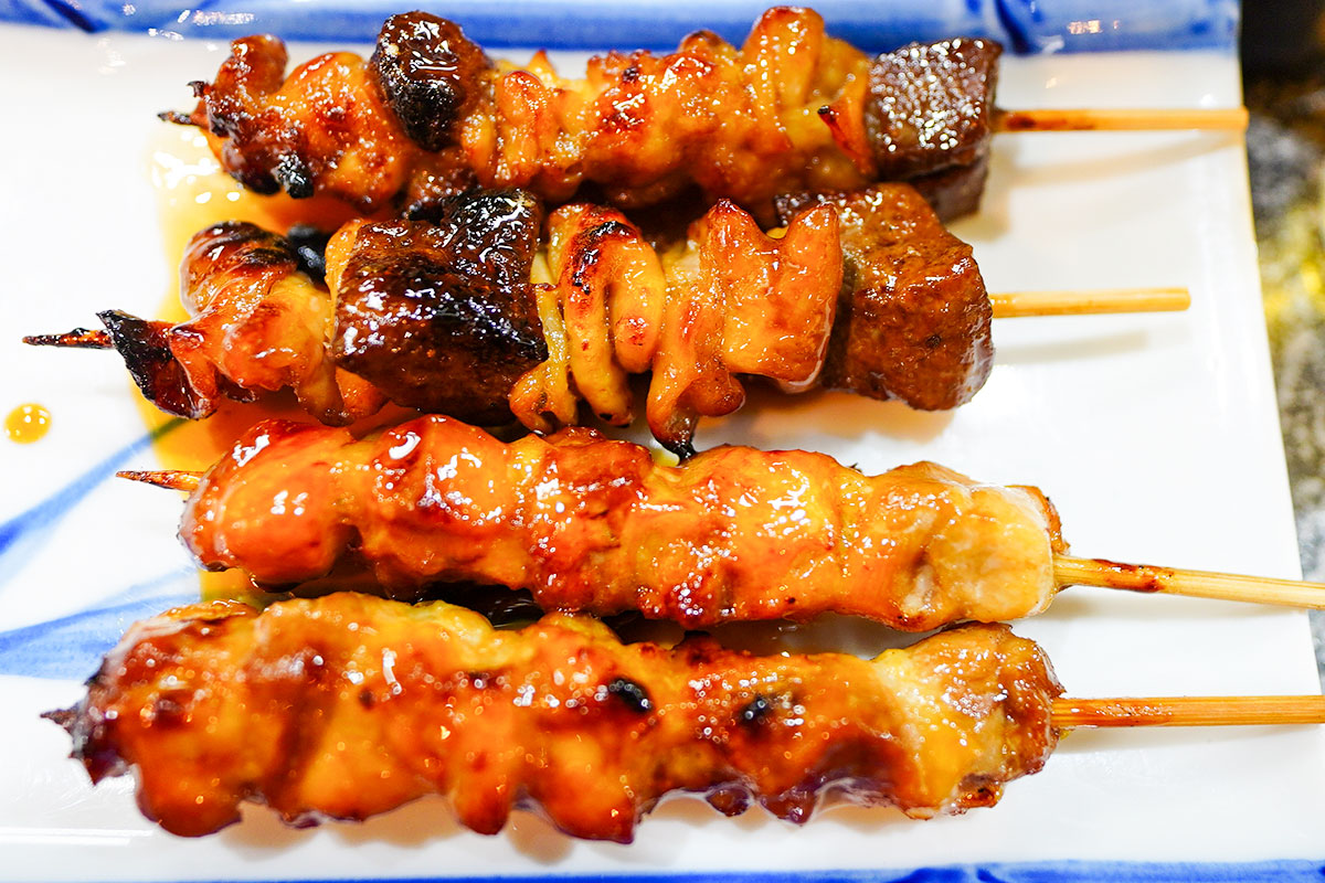 肴は、焼き鳥。とり(正肉)ともつを2本ずつタレでお願いしました。