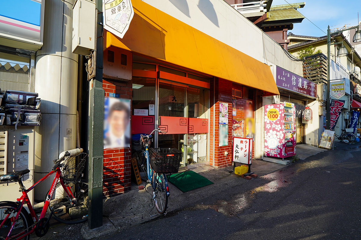 JR鶯谷駅の北口改札を出ると、目の前には独特の空気が流れています。左手には朝から飲めることで知られる大衆食堂「信濃路」がありますが、今日の目的地はそのお隣「大弘軒(たいこうけん)」です。