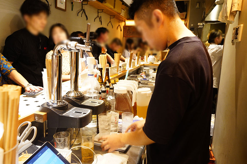 店内で8時間かけて抽出したお茶割りは香りが段違い。茶葉の深みを感じられる一杯です。週末は店内が満員になるほどの人気ぶり。