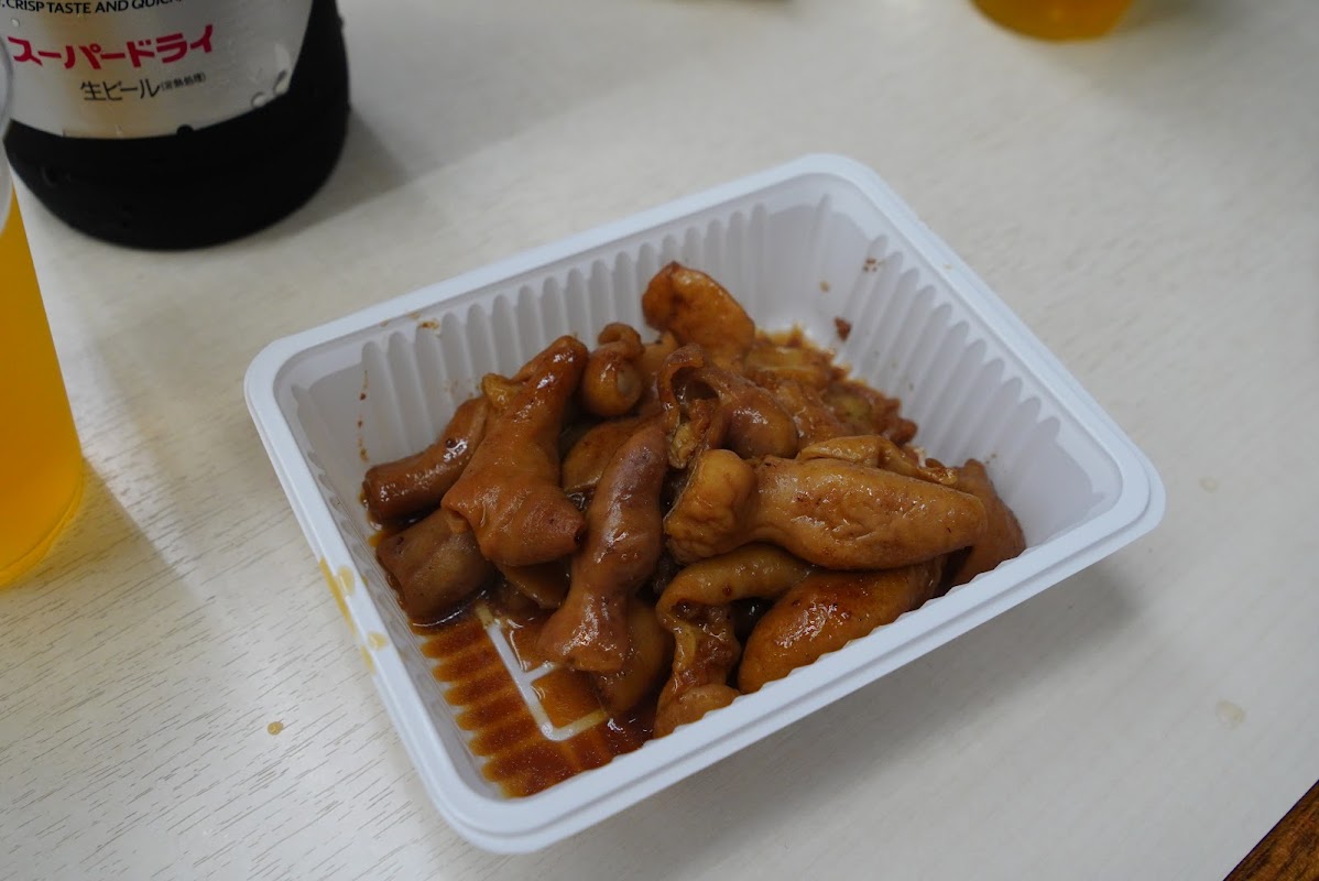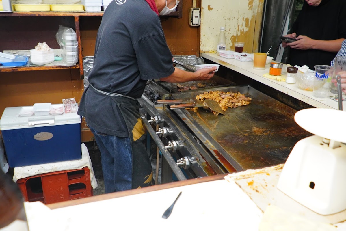 こちらの特徴は、なんといっても**「プラスチックのトレー」**で提供されるスタイル。飾らないその見た目が、かえって旅情を誘います。甘辛いタレが絡んだホルモンは中毒性が高く、朝の日差しを浴びながらビールで流し込む瞬間は、背徳的かつ至福の時間です。