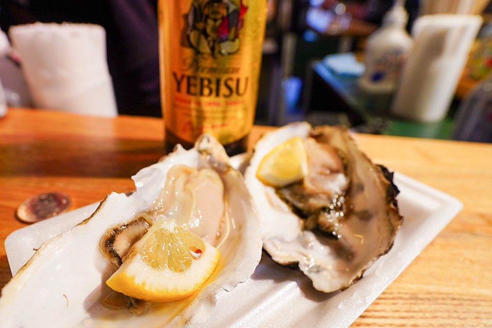 番組ではカニを頬張っていましたが、ホヤも牡蠣もなめろうもどれも太鼓判の美味しさ。瓶ビール(サッポロヱビス)は小瓶をそのままボトルごと持ち上げていただきます。