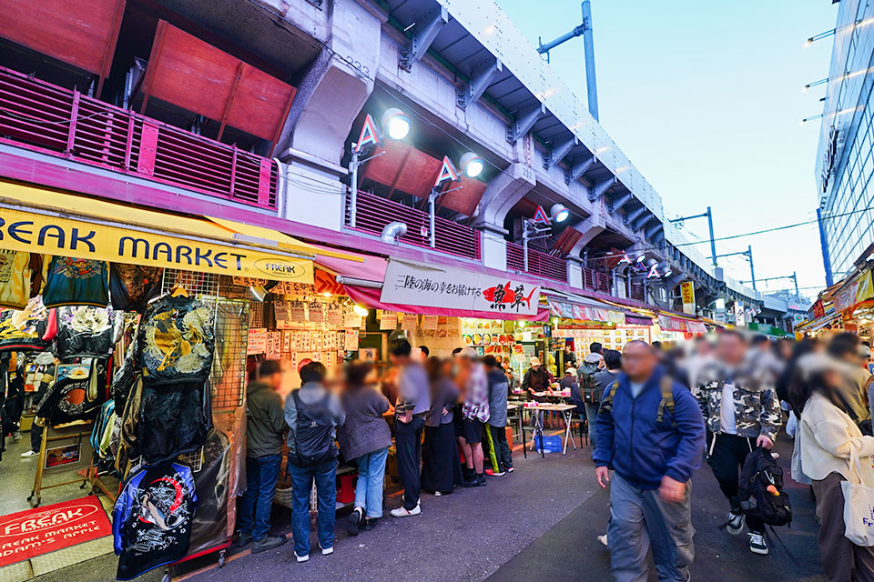 アメ横特有の魚屋さん風情の中、「魚屋風の軒先でお昼から飲む」という背徳感も美味しさのポイント。