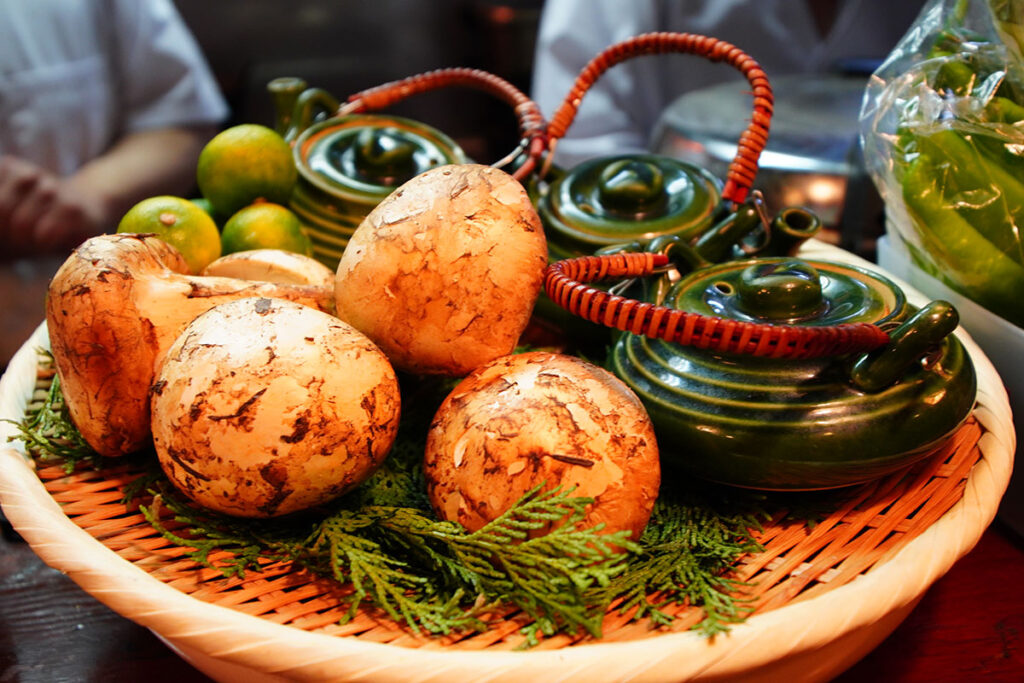 ふと目の前を見ると、大きなマツタケが籠に盛られていました。季節は秋から冬へ。土瓶蒸しもいいなと思案していたところ、昔からお世話になっている水戸の人気大衆酒場「ラクダ」の店主さんが合流してくれました。 ということで、次の肴は、地元のプロがおすすめする「しじみ」にしました。
