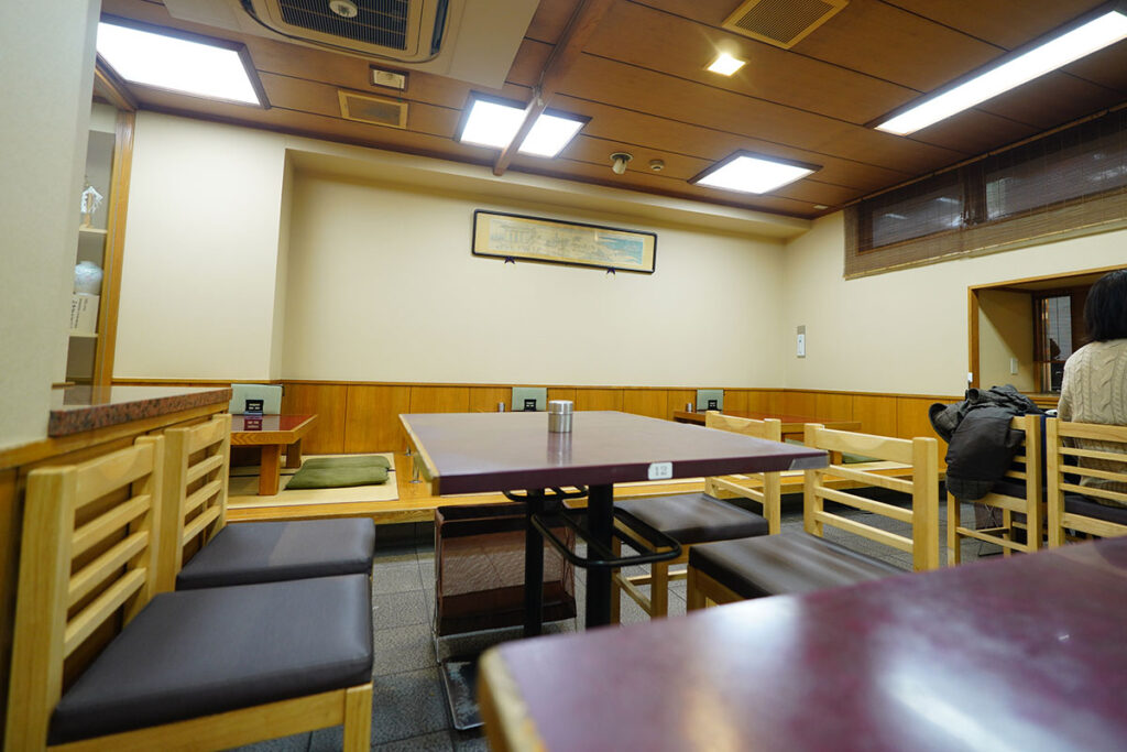 暖簾をくぐると、そこには昭和の時代で時計の針を止めたような、懐かしく温かい空間が広がっています。 観光地・浅草の飲食店といえば、どこも行列や賑わいがつきもの。しかし、ここは不思議なほど落ち着いています。テーブル席だけでなく、靴を脱いで上がれる小上がりの座敷があるのが嬉しいところ。畳の上で足を崩せば、ここが東京有数の観光地であることを忘れてしまいそうです。