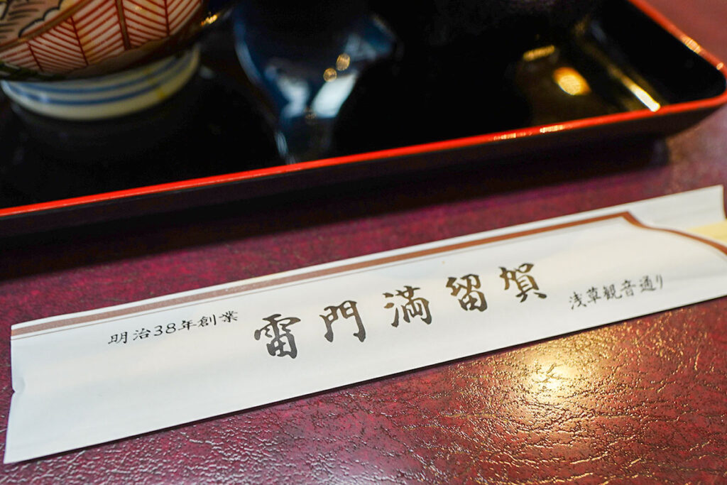 浅草駅の地下鉄出口から地上へ上がってすぐ。観音通り商店街のアーケードを少し入ったところに、凛とした佇まいの『雷門 満留賀』はあります。 創業は明治28年(1895年)。日清戦争の講和条約が結ばれたその年に産声をあげたこの店は、現在全国にある『満留賀』の屋号の中でも、その源流に近い歴史を持っています。