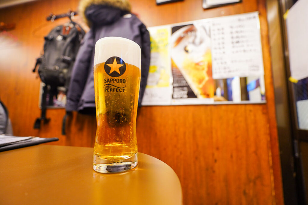 まずは何をおいてもビールでしょう。「サッポロ・ザ・パーフェクト黒ラベル」を注文。サーバーの手入れが行き届いているのがわかる、きめ細やかな泡。丁寧に注がれた黄金色の液体が、乾いた喉を潤します。