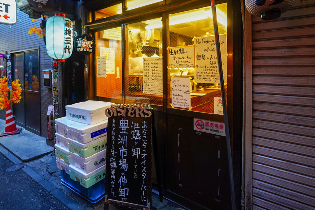 新宿駅西口からすぐ。外国人観光客も多く訪れるようになった思い出横丁は、いつ訪れても独特の活気に満ちています。細い路地を歩けば、焼き鳥や中華の香ばしい匂いが漂ってきますが、目指すのはその中にある一軒のオイスターバーです。