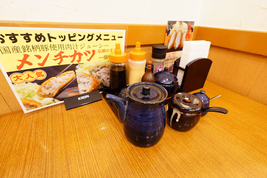 卓上にはソースだけでなく、岩塩やドレッシングなど調味料が豊富に揃っています。自分好みの味で楽しめるのが嬉しいところ。