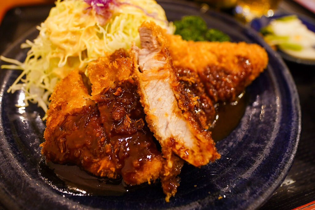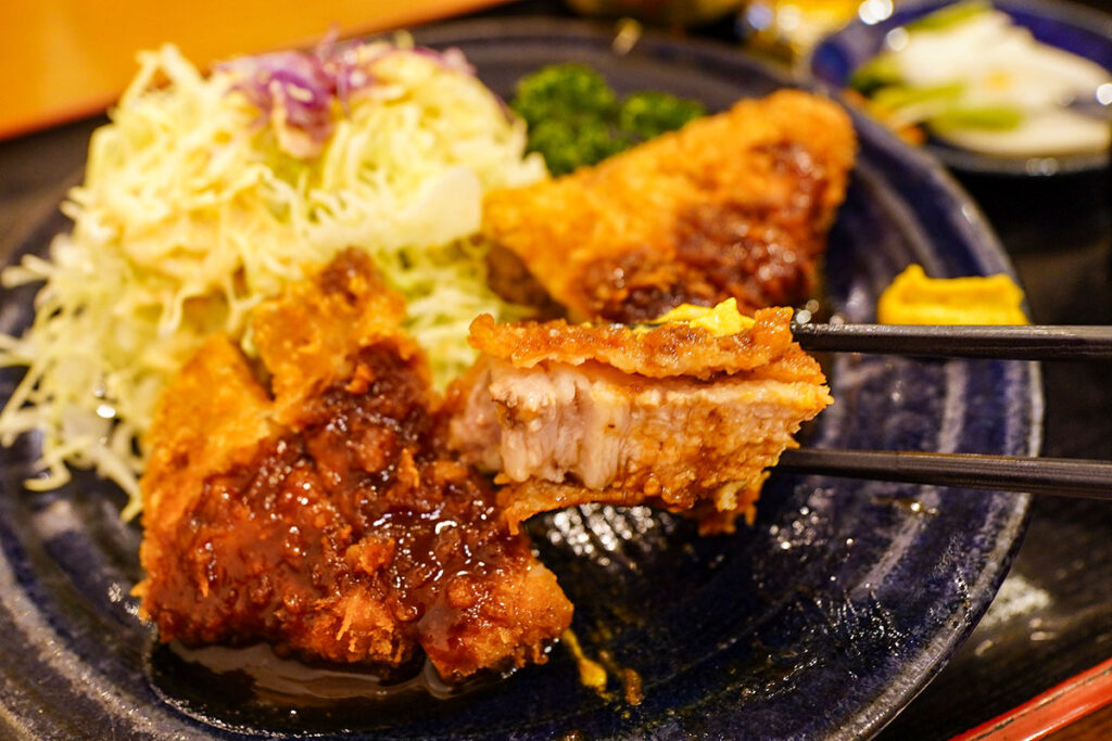昨今はSNS映えする分厚いカツも話題ですが、こちらは衣が細かく、肉としっかり密着した正統派。80年続いてきた歴史を感じさせる佇まいです。