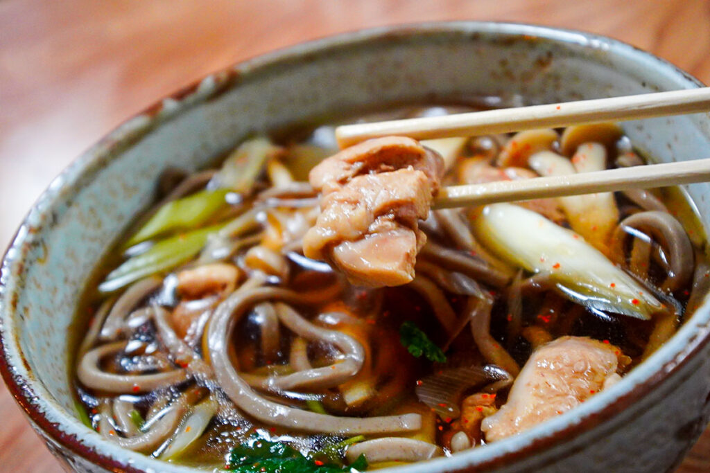 具材は一般的な柔らかい鶏肉ではなく、噛みごたえのある親鶏がたっぷりと。噛めば噛むほどに深い旨味が滲み出てくる親鶏は、まさに大人の味わいです。
