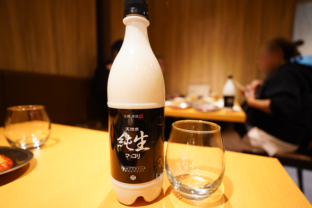 これはマッコリをあわせたいと注文。店主さんがこだわって仕入れているという日本では珍しい銘柄がでてきました。甘さ控えめでシャープな飲み心地です。