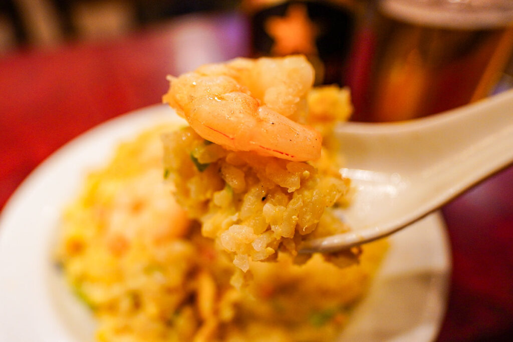締めには、ご飯もので評判の「海老炒飯」(1000円)を。