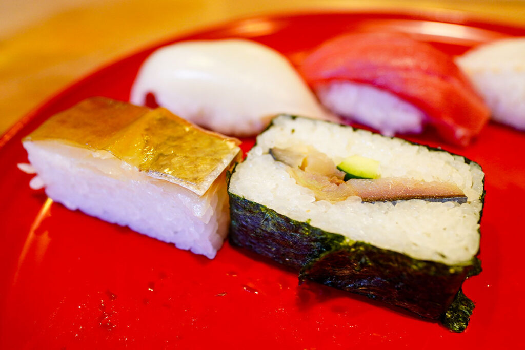 酒飲みとして特に推したいのが磯巻。酢で締めた鯖と胡瓜を海苔で巻いています。鯖の濃厚な脂と、胡瓜のポリッとした食感の対比が心地よい。