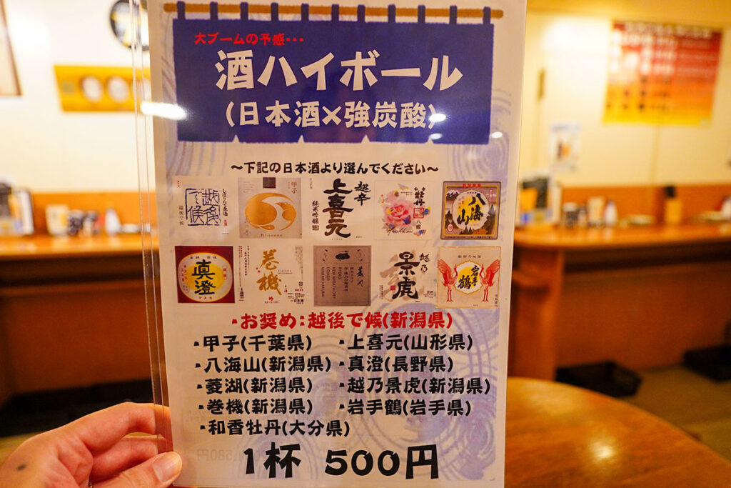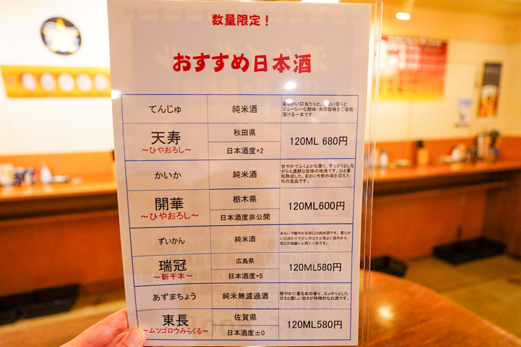 立ち飲みながら落ち着ける心地よいひととき、メインのお酒はやはり日本酒で。