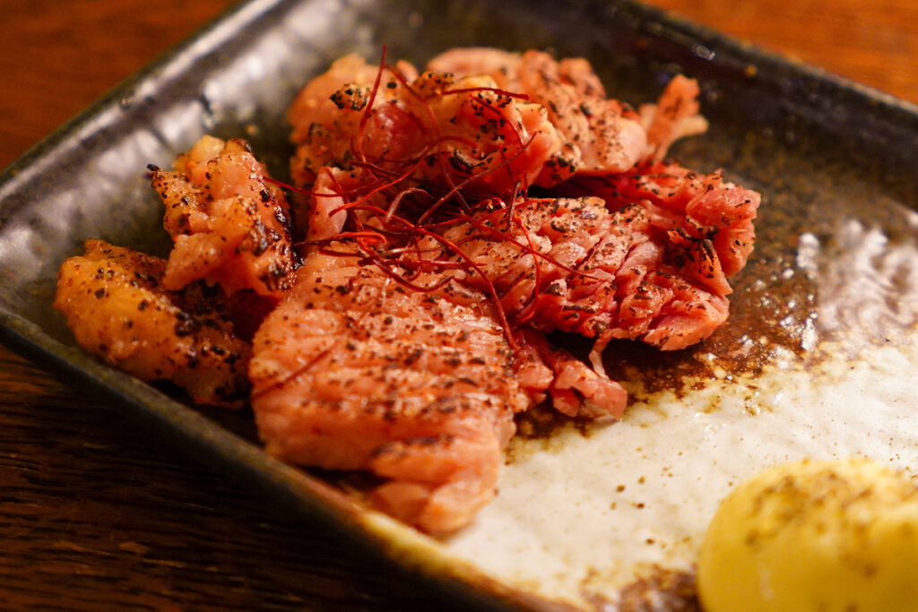 口に運べば、肉の脂の甘みと酒粕の風味が複雑に絡み合い……たまりません。洋食出身の店長さんが考案したこの傑作、和酒にも洋酒にも合う万能選手すぎて、お酒のおかわりが止まらなくなります。