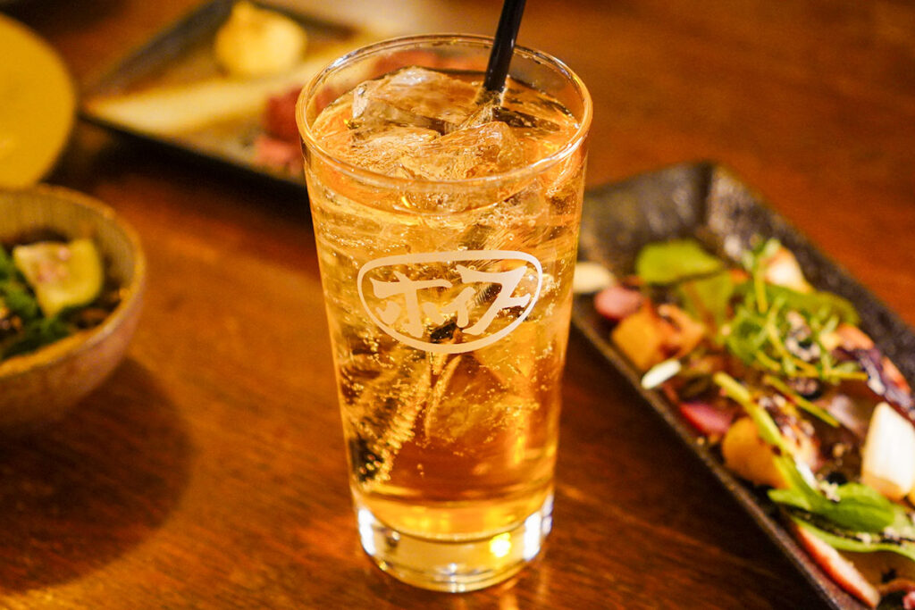 合わせるお酒も、まだまだ続きます。山の手エリアでは珍しい「ホイス」があるのも嬉しい驚き。幻の酒とも呼ばれるこのハイボールの元祖、さっぱりとしていて揚げ物との相性が抜群。さらに、ジョッキも焼酎もキンキンに冷やした「三冷ホッピー」まで完備。酒飲みのツボを完全に把握されています。