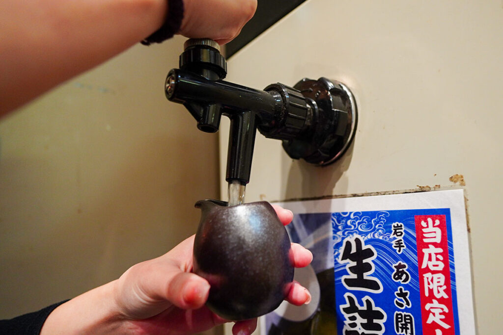 岩手県盛岡市の蔵元に行かないと飲めないような、樽詰酒がここでは日常的に楽しめるんです。とろりとした舌触りとフレッシュな香り。