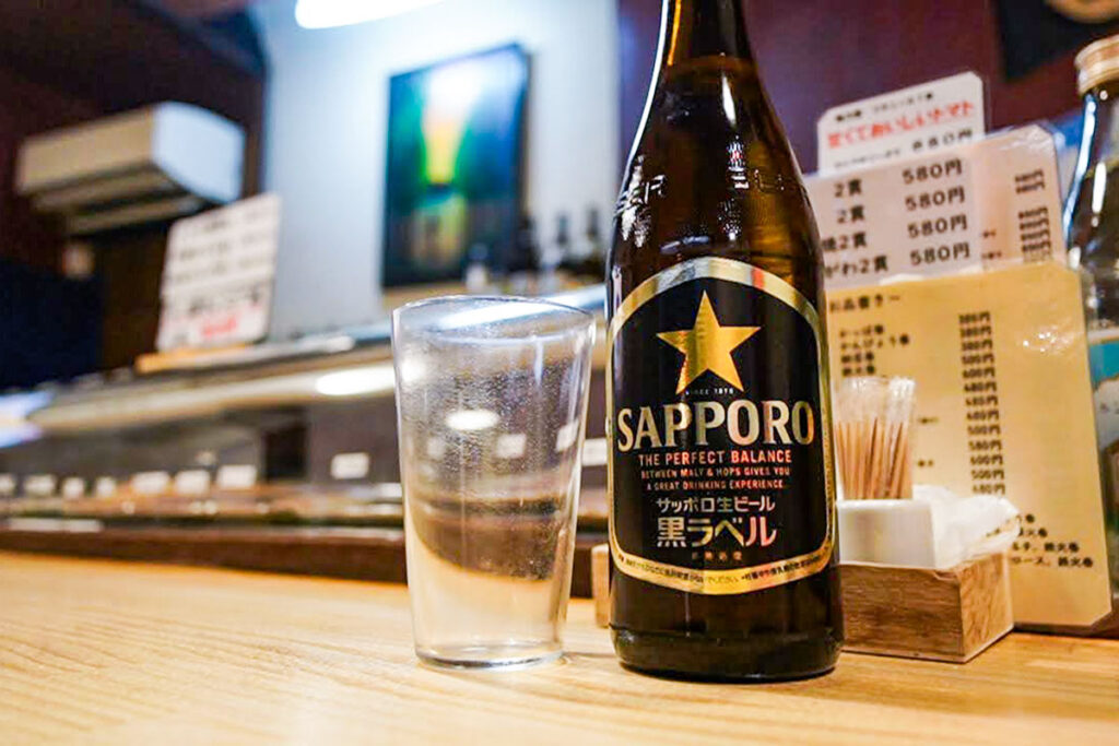まずは瓶ビールから。サッポロ黒ラベルの中瓶をもらい、手酌でグラスを満たします。湯上がりの体に冷えたビールが染み渡る瞬間。これだから町寿し巡りはやめられません。乾杯!