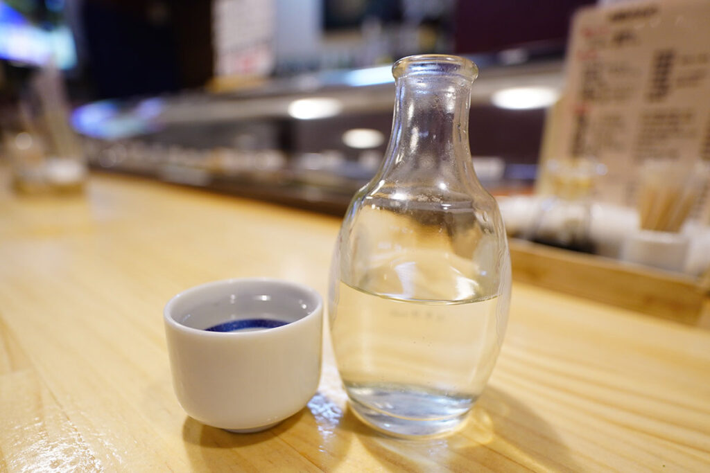 おいしい魚には、日本酒が欲しくなります。選んだのは新潟県佐渡の銘酒「金鶴(きんつる)」。佐渡島内で消費されることが多く、東京ではあまり見かけないお酒です。これをお燗でつけてもらいました。