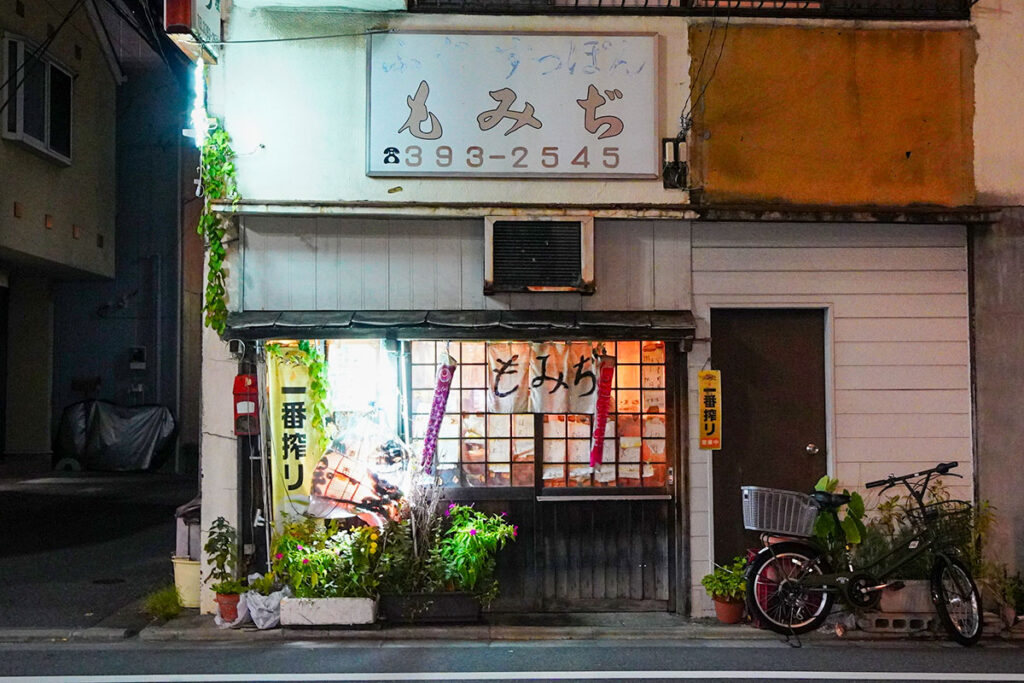 ふぐやスッポンといった高級食材を、信じられない激安価格で楽しめると評判の老舗酒場『もみぢ』。創業からまもなく50年。破れた赤提灯の先には、ご主人の温かい人柄と、活力あふれる絶品料理が待っています。セピア色に染まったクセの強い店ですが好きな人にはたまらない!