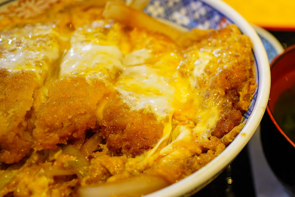 一口頬張ると、老舗蕎麦屋特有の出汁が効いた甘めのタレが衣に染み込み、豚肉の脂の甘みと混ざり合います。ご飯は少し硬めに炊かれており、つゆだくになってもベチャッとしません。