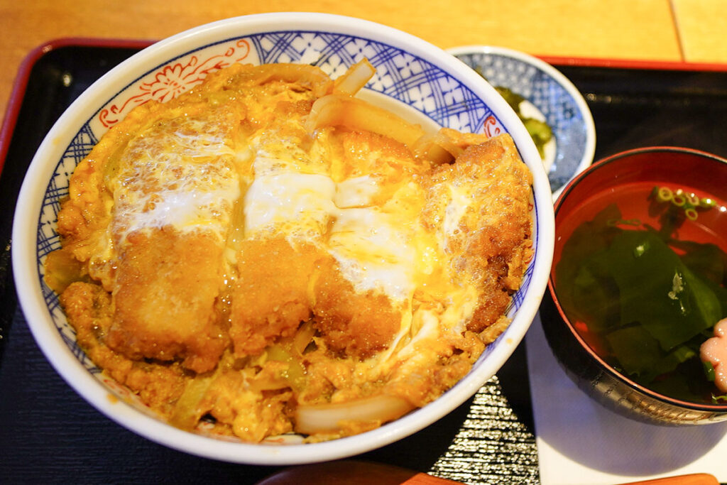 こちらのカツ丼は、運ばれた瞬間に甘辛い出汁の香りが漂い、食欲をそそります。カツは分厚く、玉ねぎと卵でしっかりとじられています。