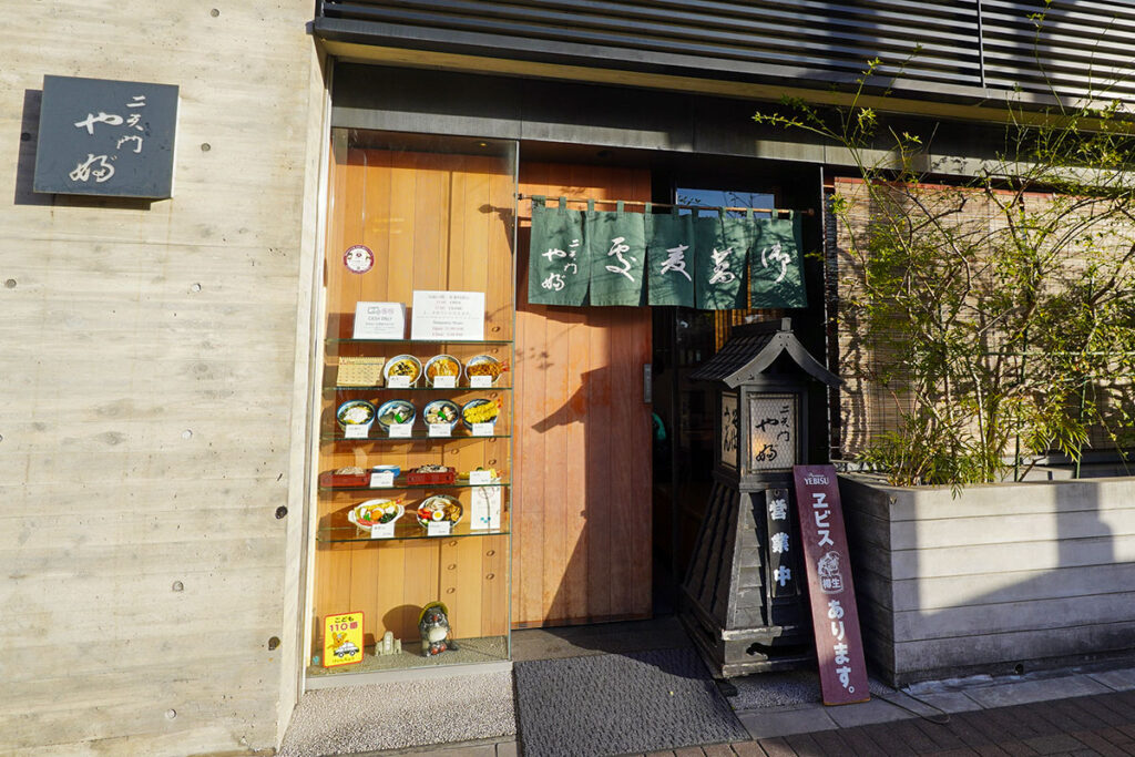 浅草寺の境内を抜け、東側の二天門を出るとすぐに見えてくる『二天門やぶ』。2017年に改装された店舗は、コンクリート打ちっぱなしの壁に木目をあわせたモダンな外観ですが、その歴史は半世紀以上前に遡ります。