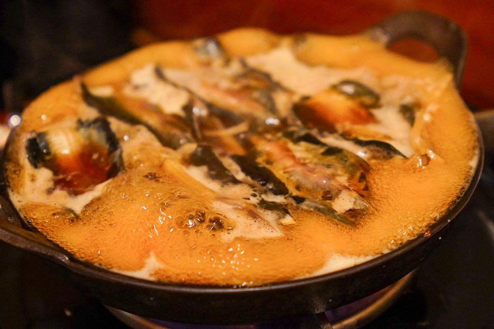 味噌ベースの出汁に、あん肝が溶け出して、スープはとろみのある濃厚な味わいに。これだけでお酒が何杯でも飲めてしまいます。体の芯から温まる、冬ならではのご馳走です。