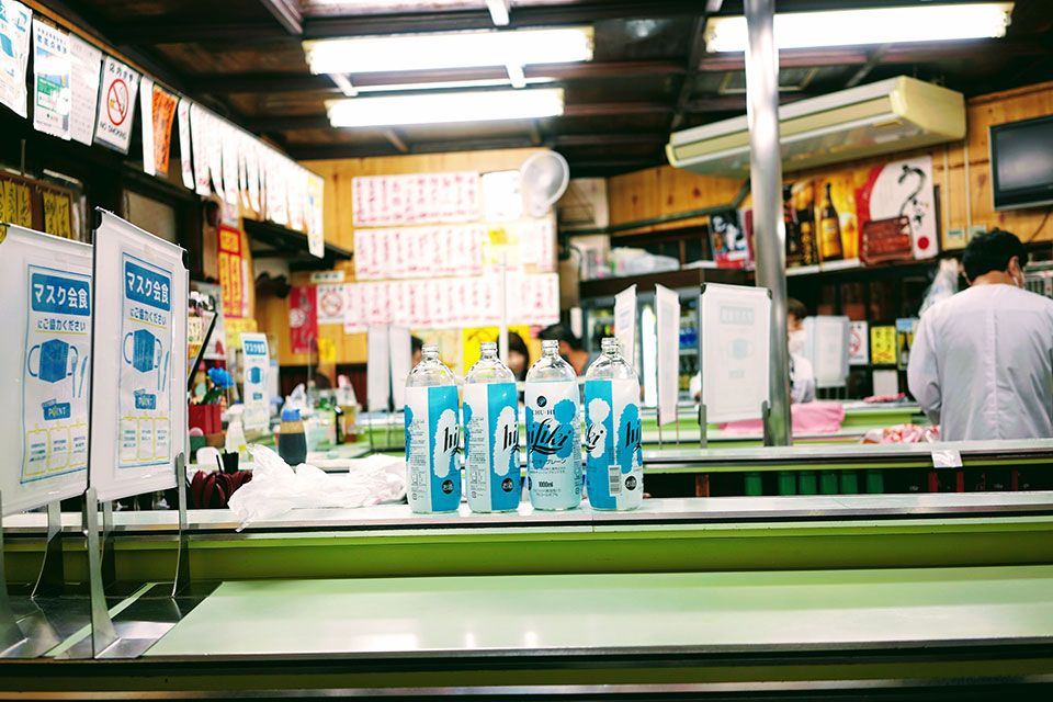 創業は昭和25年。「Wの字カウンター」は、午前中からお酒を楽しむ人たちの熱気で溢れています。