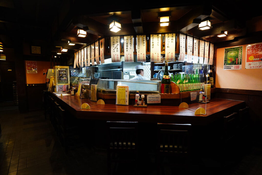 大箱の居酒屋というと賑やかすぎる印象を持つかもしれませんが、ここは違います。客層は長年通い詰めたベテランの皆様が中心。適度な活気がありつつも、落ち着いて酒と会話を楽しめる「大人の居場所」です。
