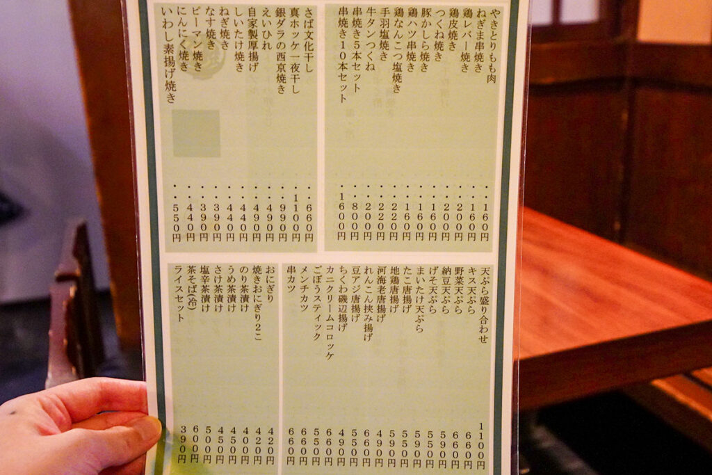 まずはビールで喉を潤しましょう。嬉しいことに、ここでは「キリンクラシックラガー」が選べます。加熱処理ビールならではの、どっしりとした苦味とコク。これが昭和の風情残るこの店に似合います。
