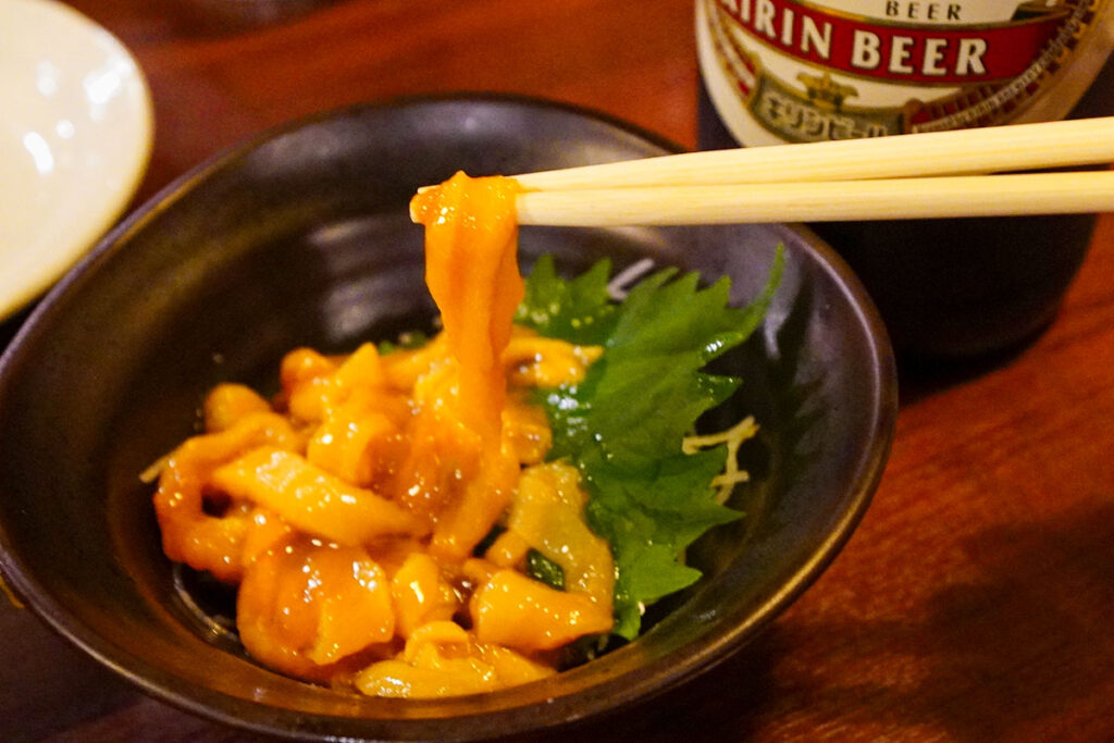 磯の香りが凝縮されたホヤは、好き嫌いが分かれる食材ですが、鮮度の良いホヤで作られた塩辛は、酒を呼ぶ最強のパートナーです。大好物。