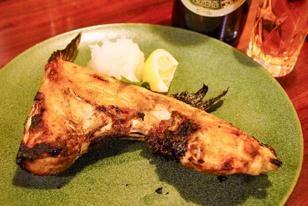 この店はメバルやタチウオなど、その日の仕入れによって様々な魚料理が楽しめますが、今回は「ぶりカマ塩焼き」(770円)を。