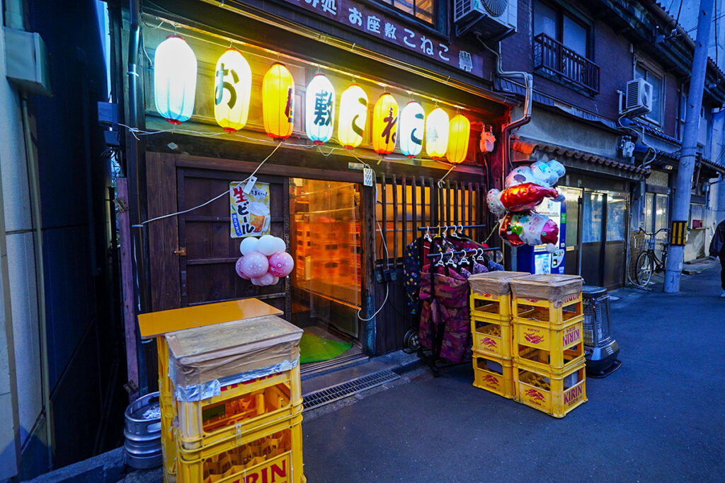 大阪・京橋は居酒屋天国。立ち飲みストリートから少し入った路地に、昭和の空気をそのまま残した長屋建築があり、ここが飲み屋さんになっています。店名は『立ち呑み処 お座敷こねこ』。一見すると普通のお宅のようですが、ここは正午からお酒が楽しめる酒場。靴のまま上がる独特のスタイルと、実家に帰ってきたような安心感が漂う人気店をご紹介します。