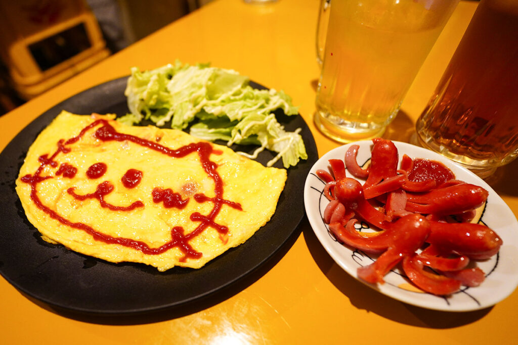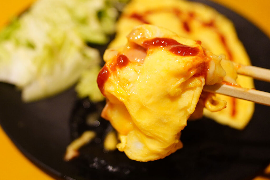 そして外せないのが「伝説のチーズオムレツ」(450円)。運ばれてきて思わず笑顔になりました。ケチャップで可愛らしい猫の顔が描かれているのです。