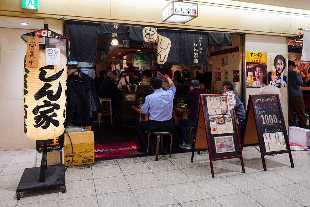 大阪・梅田の地下深くに広がる、昭和の空気を色濃く残した巨大な飲み屋街、大阪駅前ビル。第1ビルから第4ビルまで連なるこの「地下迷宮」に、連日満席の賑わいを見せる一軒があります。『鉄板串酒場 しん家』。2013年のオープン以来、このエリアに若い世代も呼び寄せフロアの活気を牽引してきた人気店です。