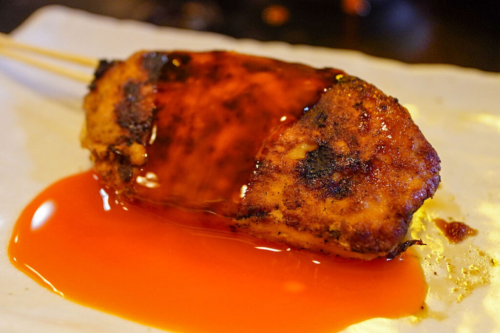 甘辛いタレをまとったふっくらとしたつくねと、濃厚な卵黄のハーモニー。