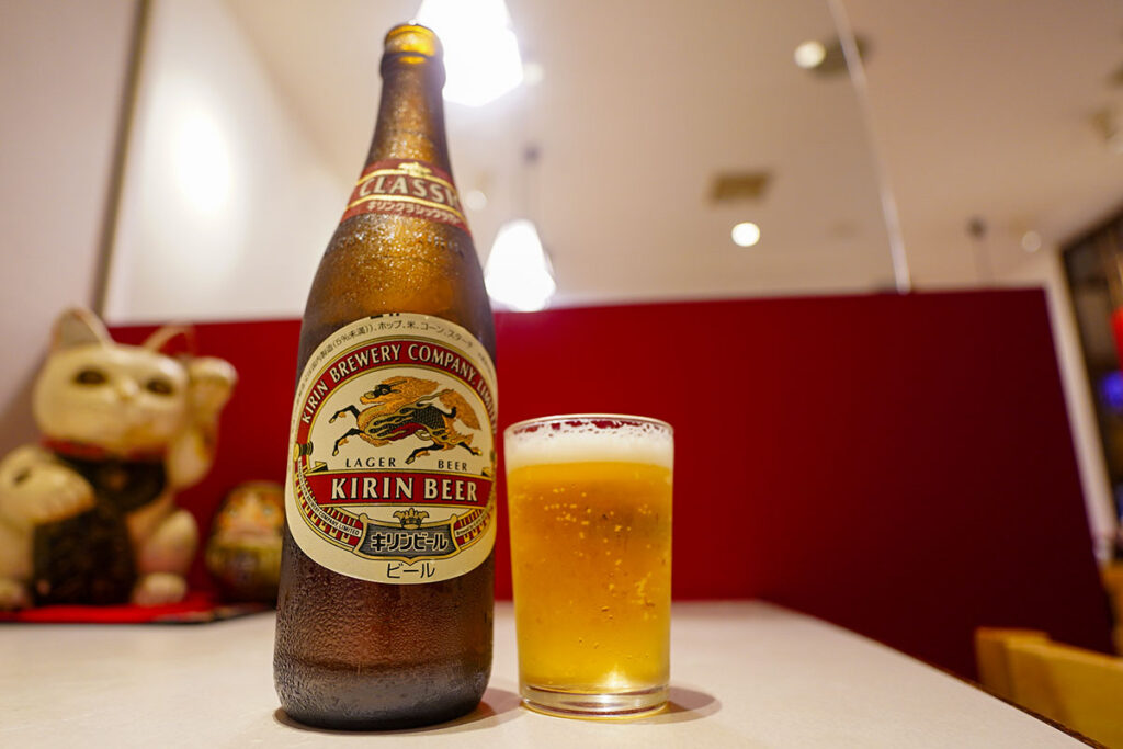 まずは喉を潤しましょう。老舗の町中華には、やはり熱処理ビールのどっしりとした苦味が似合います。銘柄は「キリンクラシックラガー」の中瓶。よく冷えたグラスに注ぎ、すっと飲み干す。さあ、テンション上がっ行きましたよ!