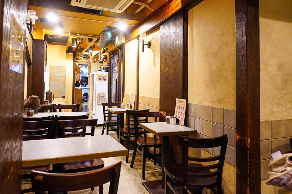 店舗は1階と2階があり、それぞれ雰囲気が異なります。1階はカウンター席が中心で、厨房の熱気とスパイスの香りをダイレクトに感じる空間。