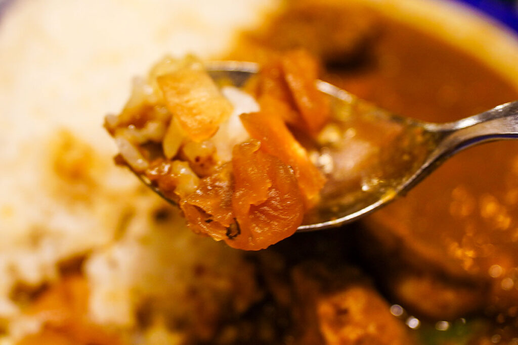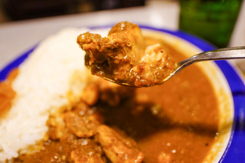 ゴロゴロと入った大ぶりのチキンはスプーンでほぐれるほど柔らかく、噛むほどに肉の旨味が溢れ出します。