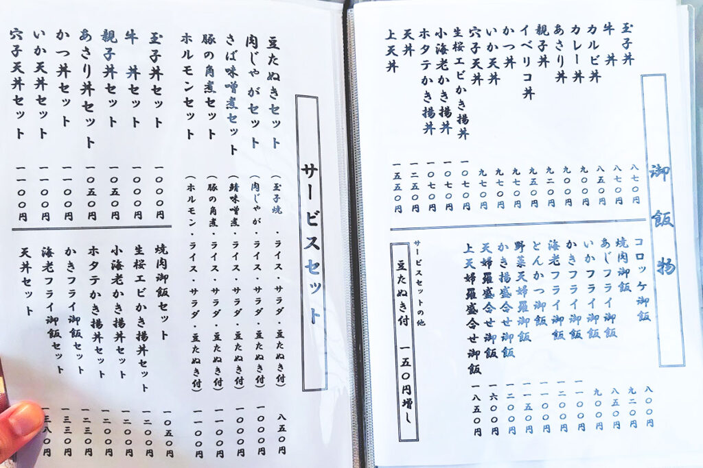 ご飯物とサービスセット