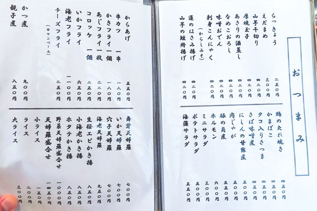 よく見たら、蕎麦前のおつまみも大変充実しています。通いたくなるなぁ。