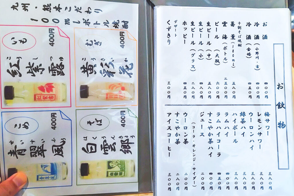焼酎小瓶の専用メニューもあり、お昼営業のみとは思えないほどお酒を歓迎する空気が満ちています。さすがは赤羽!