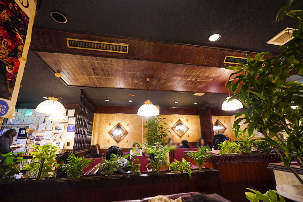店内に入ると、そこは完全に昭和の世界。艶のあるあめ色の壁、きらめくレトロな照明、そして体を包み込むようなソファ。